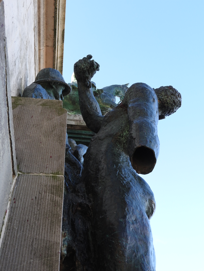 Détail de la statue d’Ostende avec la main coupée.