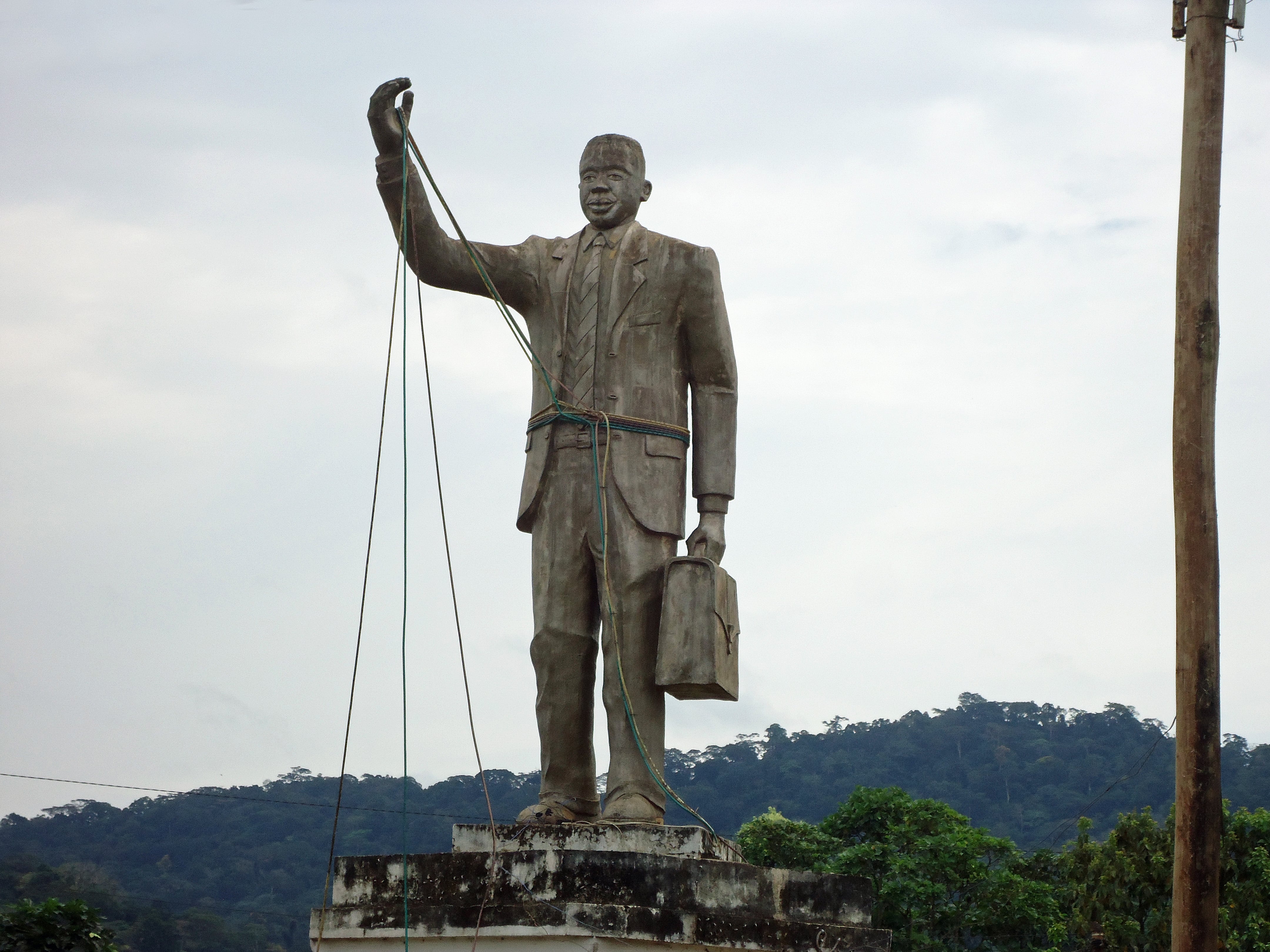 Statue de Ruben Um Nyobé érigée au cœur de la ville d’Eseka, photographiée le 5 août 2016, CC BY-SA 4.0, via Wikimedia Commons